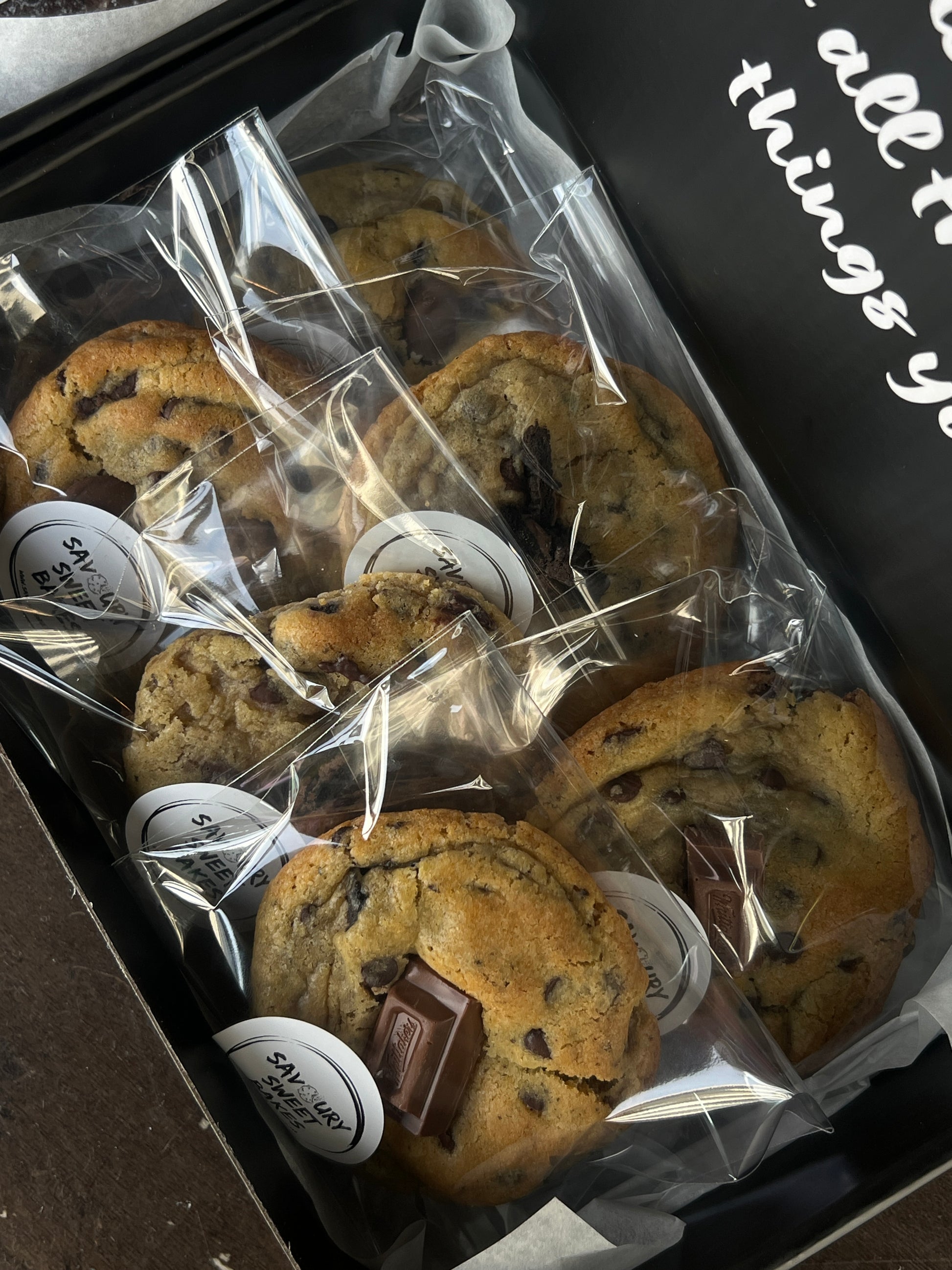 6 mixed classic cookies. 2 classic chocolate chip, 2 Oreo chocolate chip, 2 chocolate brownie cookies. Tempt your taste buds with 3 flavours!